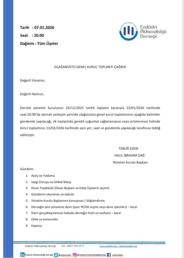 Olağanüstü Genel Kurul Toplantısı Yapılacaktır.